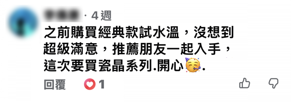 之前購買經典款款試水溫,沒想到超級滿意,推薦朋友一起入手,這次要買瓷晶系列.開心?