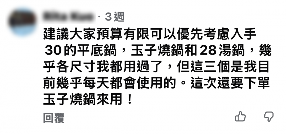 建議大家預算有限可以優先考慮入手30的平底鍋,玉子燒鍋和28湯鍋,幾乎各尺寸我都用過了,但這三個是我目前幾乎每天都會使用的。這次還要下單玉子燒鍋來用!