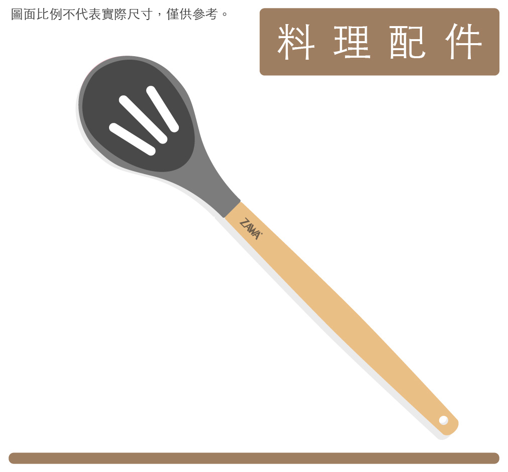 料理配件|木柄矽膠橢圓洞勺 炭灰色