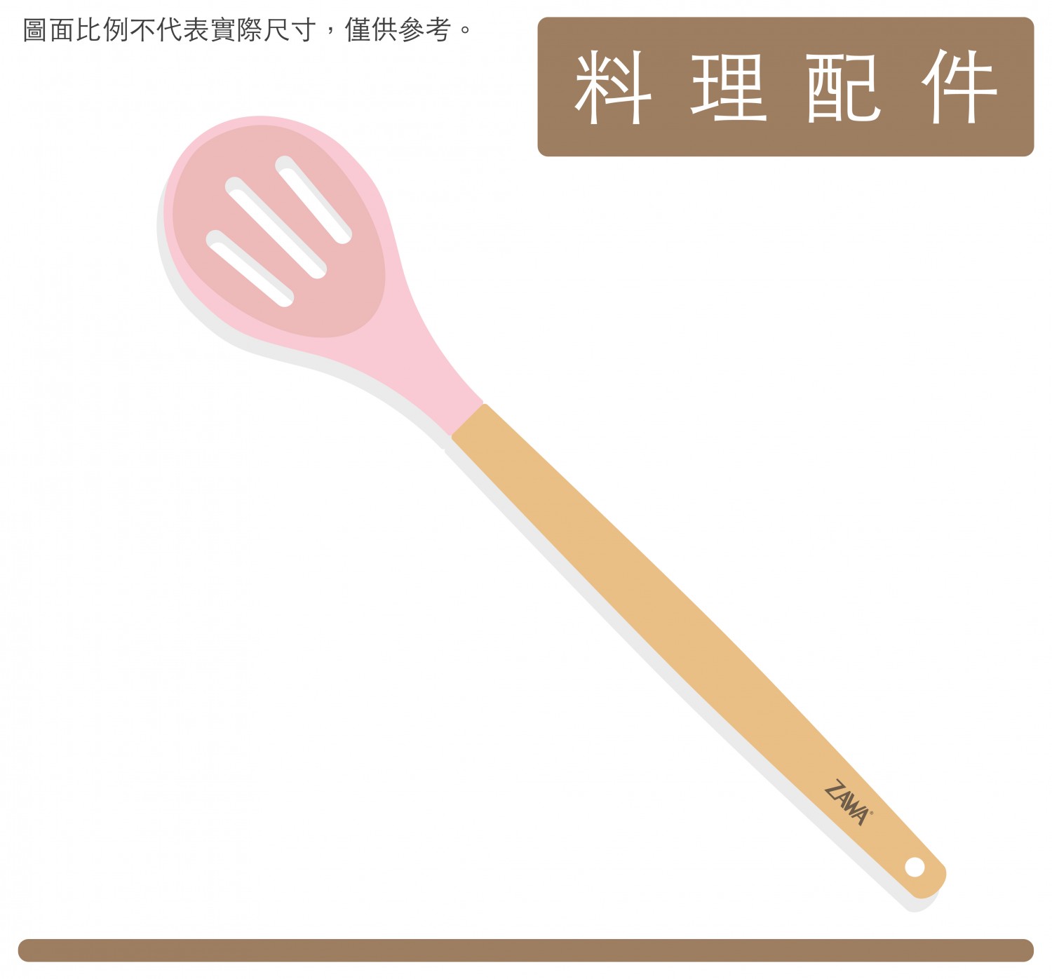 料理配件|木柄矽膠橢圓洞勺 櫻花粉