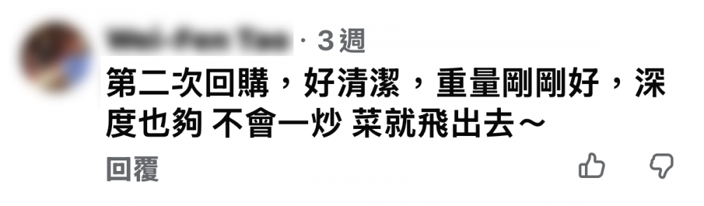 第二次回購,好清潔,重量剛剛好,深度也夠,不會一炒 菜就飛出去~